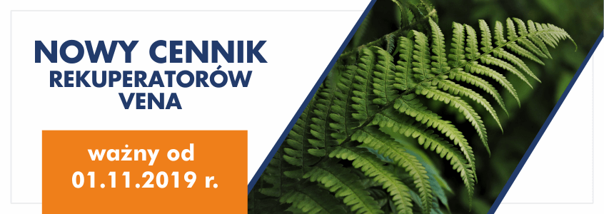 Informujemy, że zaktualizowaliśmy cennik rekuperatorów VENA, w związku z czym od 1 listopada 2019 r. obowiązywać będzie nowa wersja cennika.