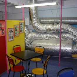 Wentylacja nawiewno-wywiewna z odzyskiem ciepła w Centrum Zabaw Fikoland realizowana przez 2 zestawy wentylacyjne CNWB 600/315 o wydajności 1.500 m³/h każda.