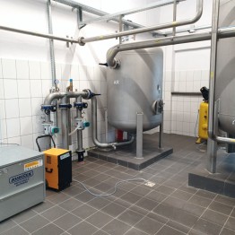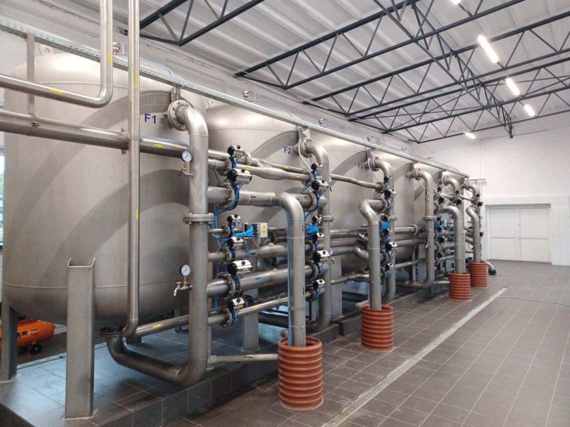 Dwustopniowa filtracja na dużych filtrach ciśnieniowych wraz z napowietrzaniem ciśnieniowym skutecznie usuwa żelazo, mangan i związki amonowe. - Pełna automatyzacja pracy stacji