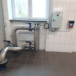 - wykonanie instalacji dezynfekcji podchlorynem sodu oraz dezynfekcji ciągłej przy użyciu lamp UV;