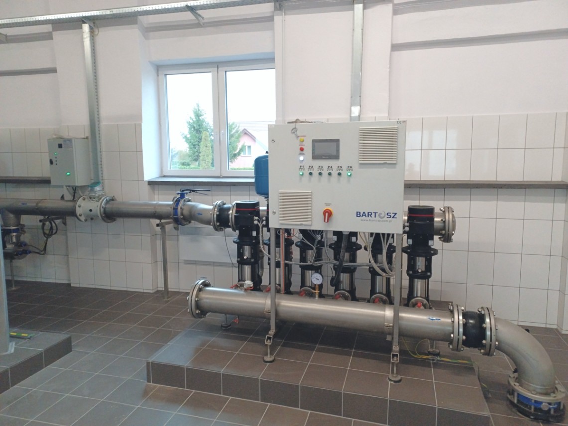 - dostawa i montaż zestawu hydroforowego własnej produkcji (6 pomp, łączna moc 33 kW, wydajność 100 m³/h);