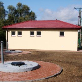 - modernizacja budynku SUW z wykonaniem dachu dwuspadowego oraz dociepleniem, stolarką, instalacją grzewczą, wentylacyjną, osuszania powietrza oraz elektryczną;