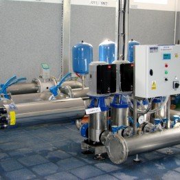 - dostawa i montaż zestawu hydroforowego prod. Firmy Bartosz typu ZH MBE 40/4.4 SPE wykonanego w oparciu o 4 pompy Movitech o mocy 7,5 kW;