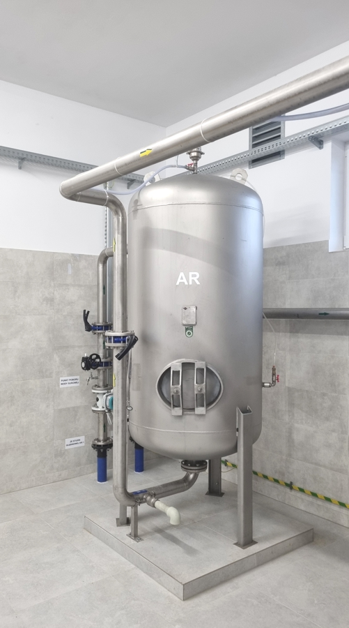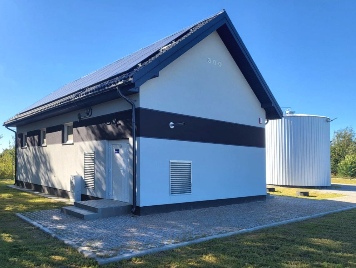 - montaż dwóch zbiorników wyrównawczych o pojemności 100 m³ każdy (stal zabezpieczona antykorozyjnie, izolacja termiczna, obudowa z blachy trapezowej),