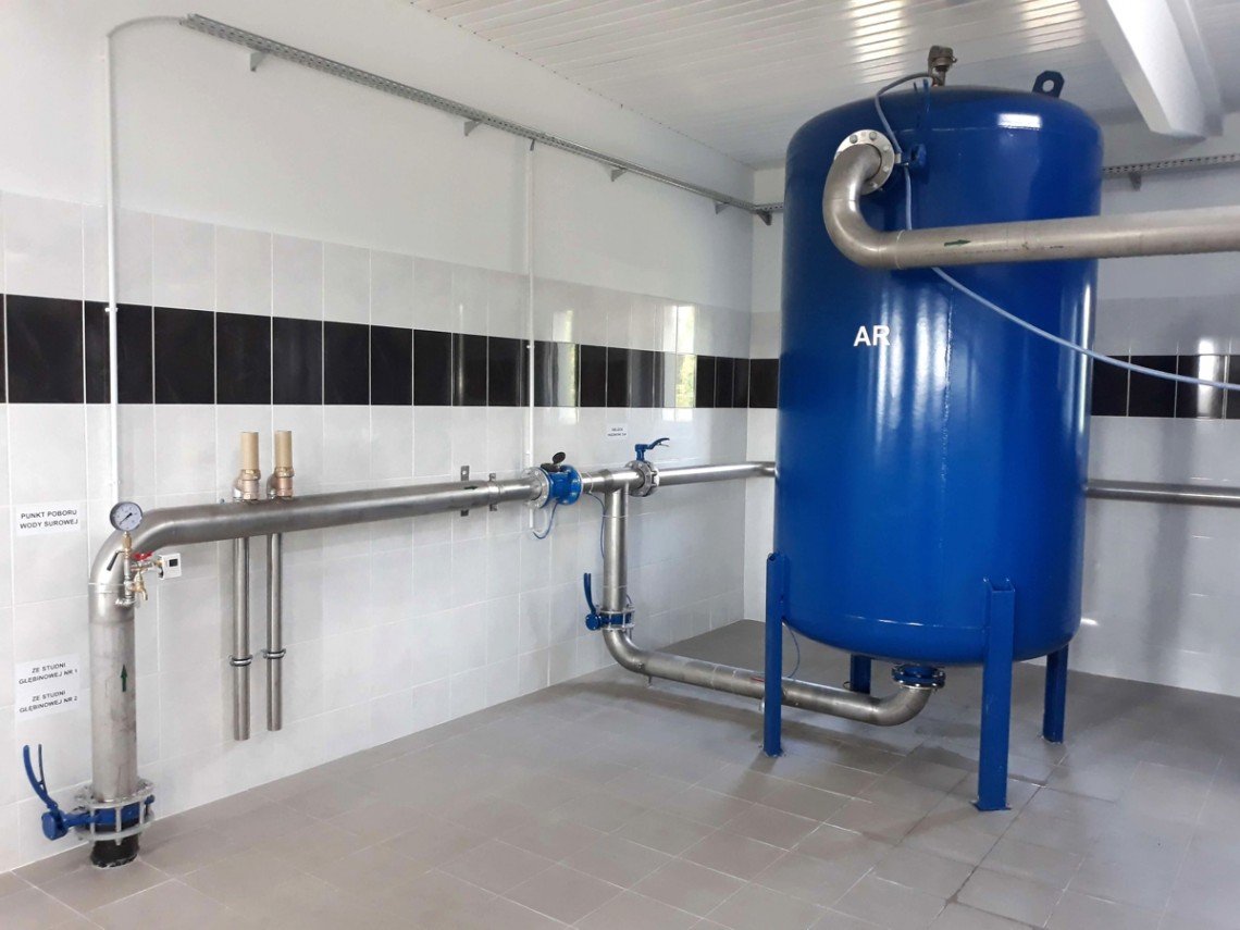 - dostawa i montaż wyposażenia technologicznego stacji uzdatniania wody: napowietrzanie w aeratorze dn 1600 mm prod. Firmy Bartosz; filtracja dwustopniowa ciśnieniowa na 4 filtrach pośpiesznych dn 1600 mm wykonanych ze stali czarnej, wypełnionych złożami kwarcowymi, braunsztynowymi;