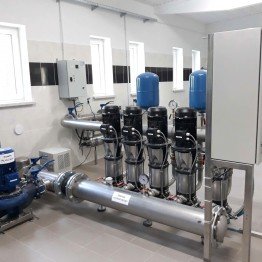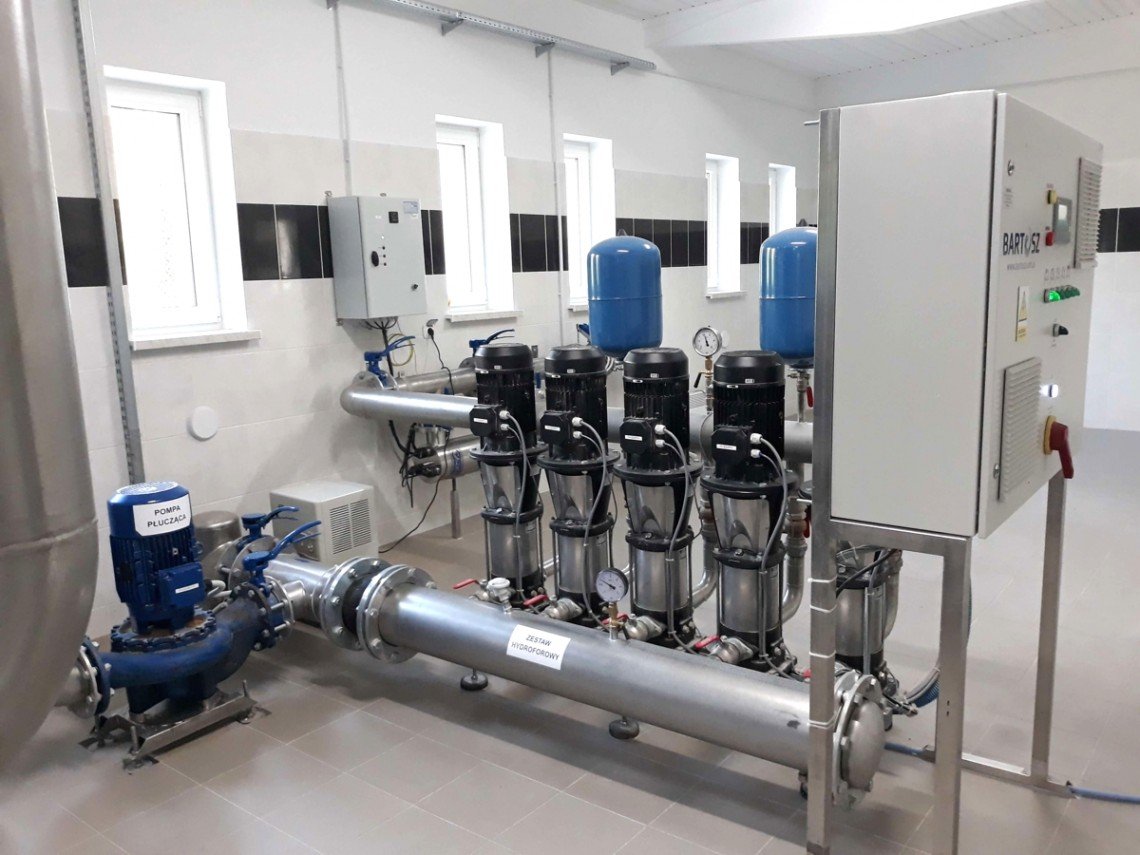 - dostawa i montaż zestawu hydroforowego prod. Firmy Bartosz typu ZH EV 15.5.5.SPE+LPC125-250 wykonanego w oparciu o 5 pompy o mocy 5,5 kW każda + pompa płuczna o mocy 5,5 kW;