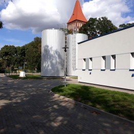 - przebudowa i nadbudowa budynku stacji uzdatniania wody z modernizacją stropodachu, dociepleniem budynku, stolarką, instalacją grzewczą, wentylacyjną, osuszania powietrza oraz elektryczną;