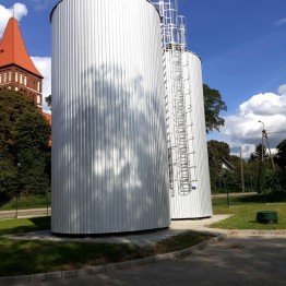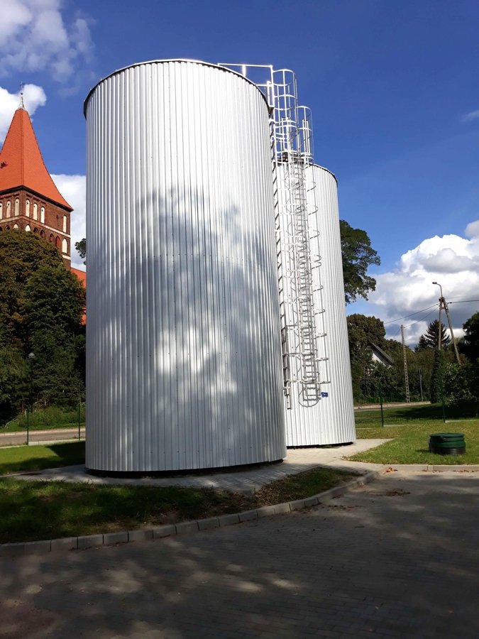 - dostawa i montaż 2 zbiorników wyrównawczych – o pojemności V=150 m3 każdy;