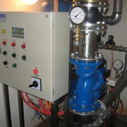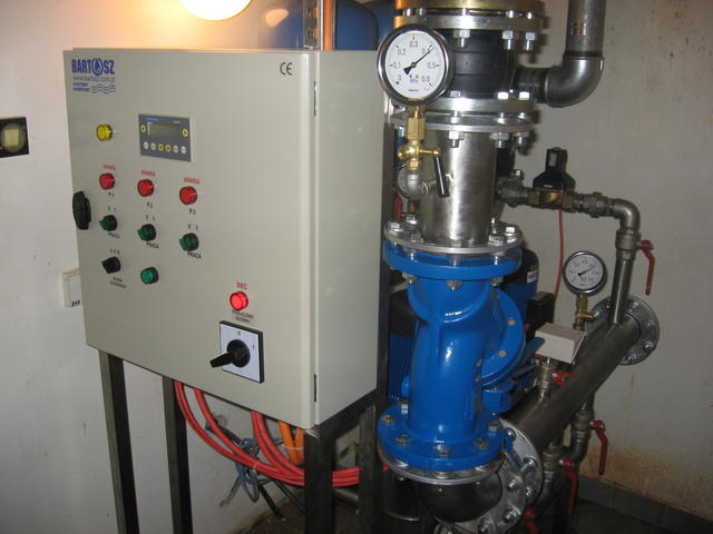 - Typ sterowania zestawem: kaskadowe z automatycznym testowaniem pomp przez obejście z zaworem elektromagnetycznym