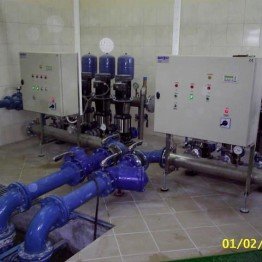 - Ilość pomp w zestawie hydroforowym: (1) 3 szt. CR 32-4-2; (2) 4 szt. CR 32-3